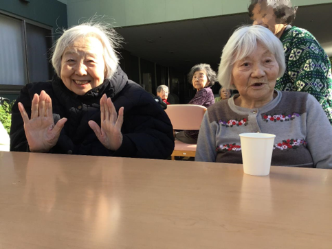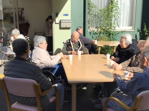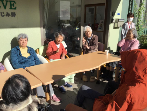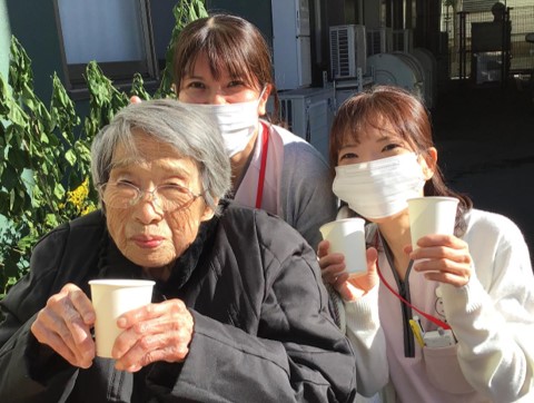 そんな状況下でのお茶会ではありましたが「こんな青空の下でお茶を飲めるなんて、もうそれだけでとても楽しいわ」、「職員の皆さんがいつもいつも楽しい企画を考えて下さって、感謝してます」