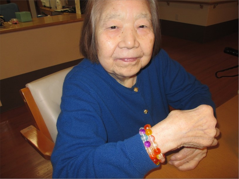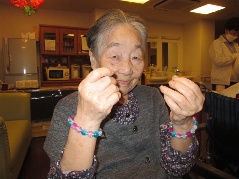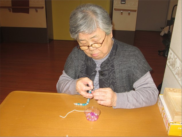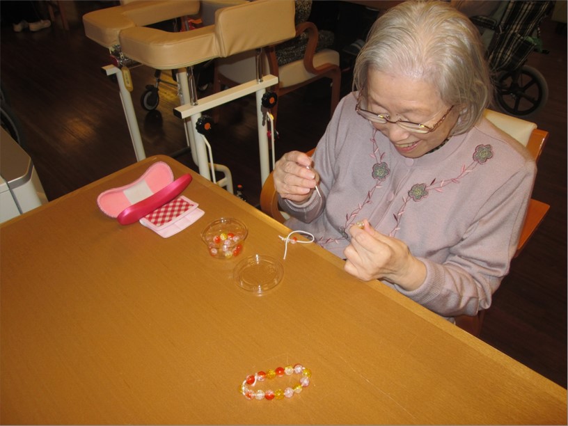 季節が秋になり、長袖を着ているとそろそろアームバンドが欲しくなってきました。 そこで、『ル・レーヴ南浦和さくら館』では綺麗なビーズが手に入ったので、皆でアームバンドを製作しました。