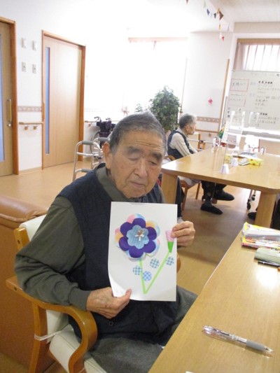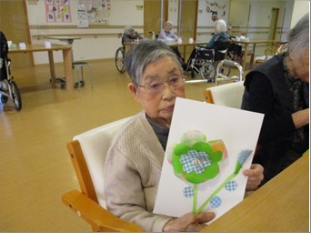 『ハートフルケア見附』では今月はご入居者様から、秋にちなんだ花の飾りを作成頂きました。