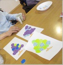 コスモス・紅葉とブドウの貼り絵を作製しました。