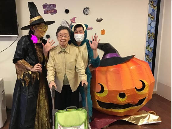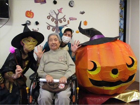 最後は職員お手製の大きなかぼちゃの前で記念撮影をして、ハロウィンパーティーが終了となりました。