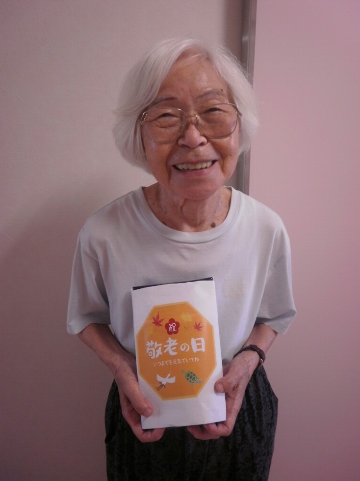 皆様こんにちは。『リーシェ亀田中島』では『敬老のお祝い』で、ご入居者の皆様全員へ『マスク』をお配りしました。