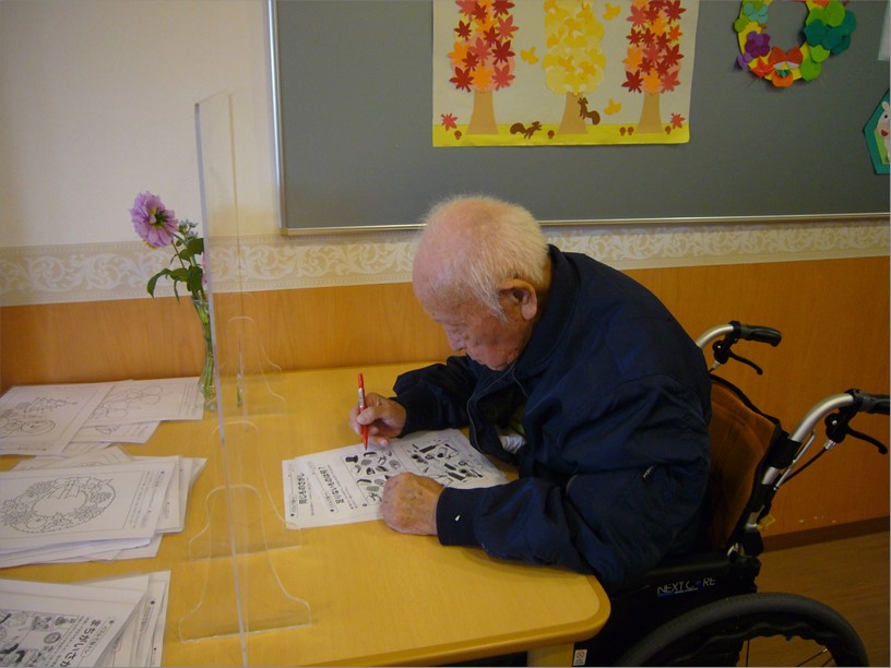 11月9日(火)の午後、『住宅型有料老人ホーム ハートフルヴィラ出来島』では、「塗り絵・パズルのレク」をおこないました。