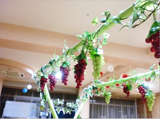 今回のぶどう狩りでは、本物そっくりのぶどうを用意し、制限時間内にいくつ獲れるかというゲーム要素を取り入れました。