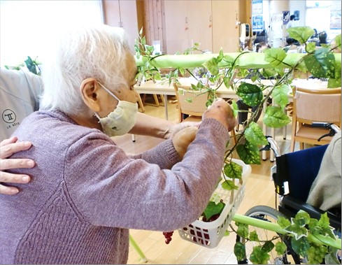 近くで見ても間違えてしまいそうになるほどで、ご利用者様からも、「触るまで分からなかった!」や「あれはぶどうじゃないの?」と驚きの声があがっていました。