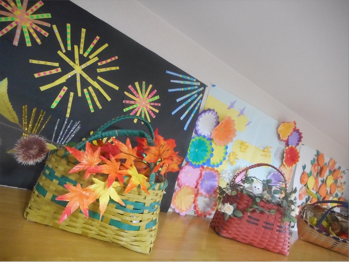 ‘’○○の秋‘’と例えられる事が多い秋ですが、施設の玄関にはご入居者様が日々作成された作品が飾られています。