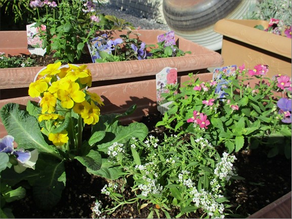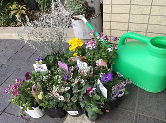 それぞれのプランターに可愛らしい寄せ植えが完成!