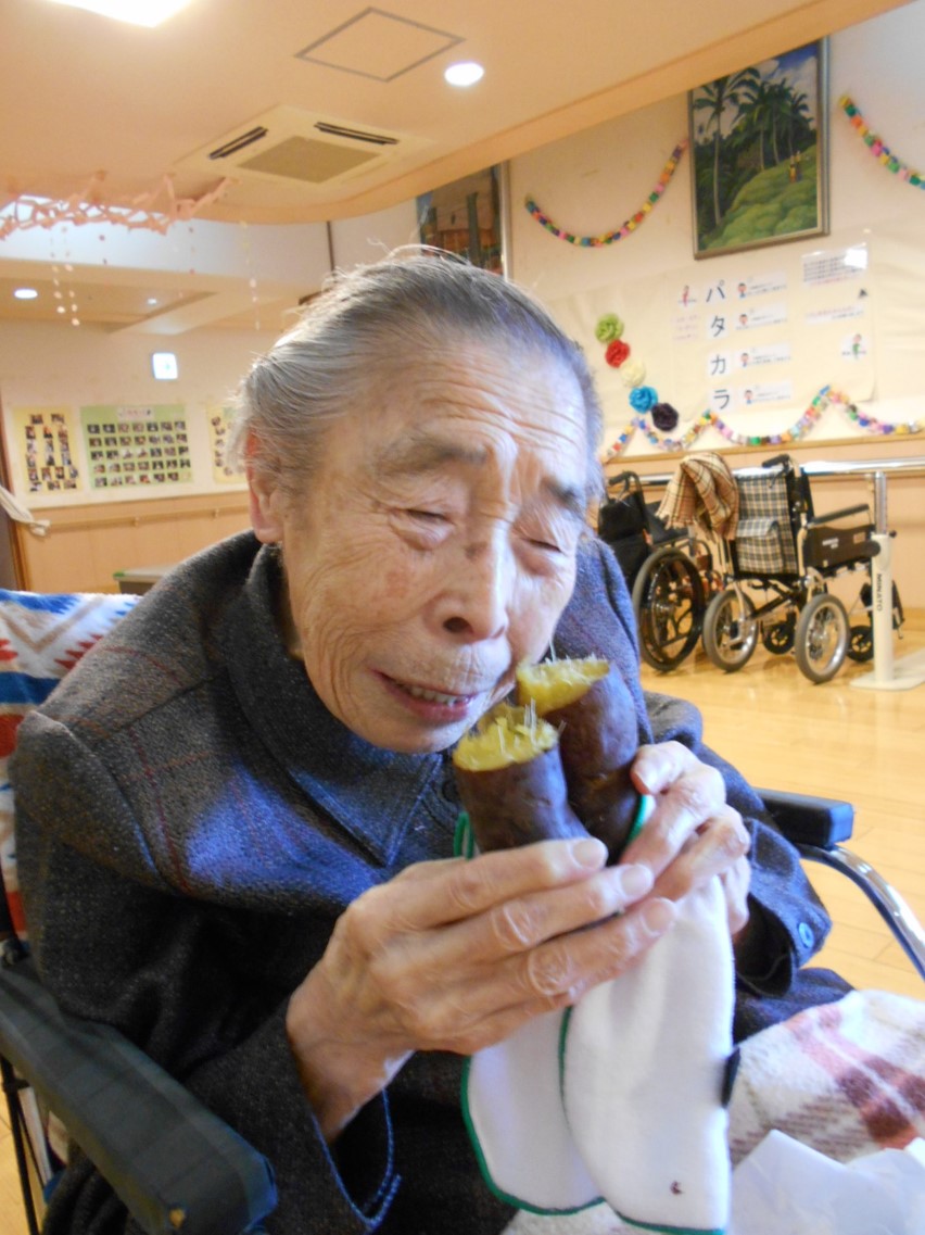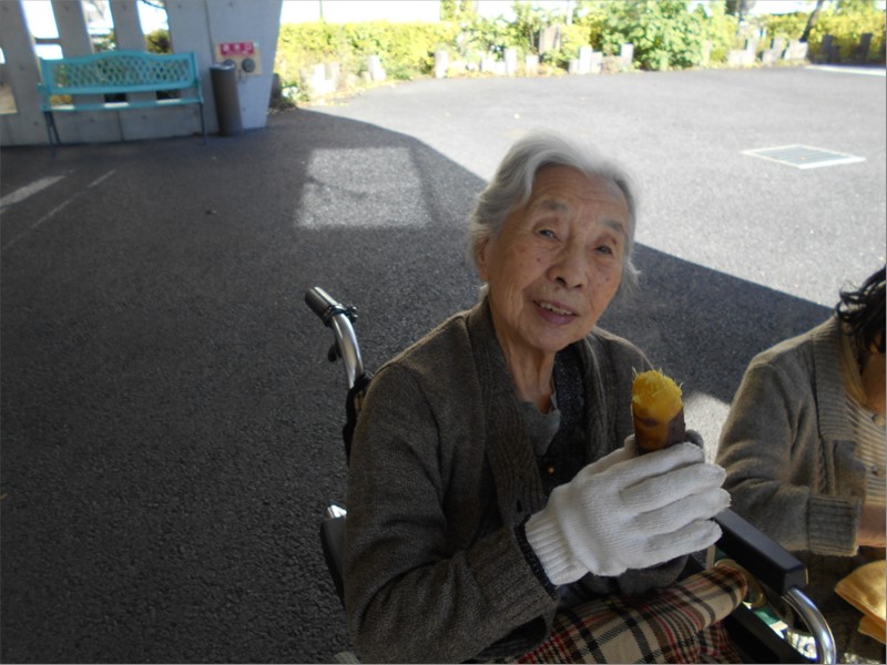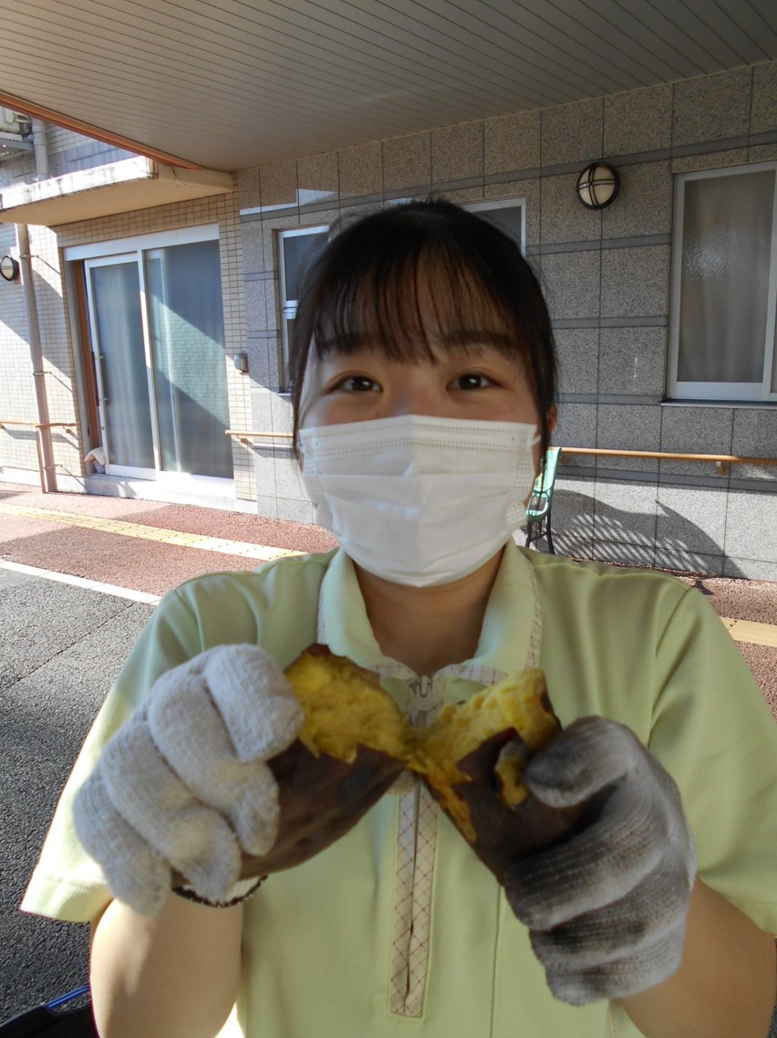 しっとりホクホクの焼き芋に「美味しい」と笑顔。