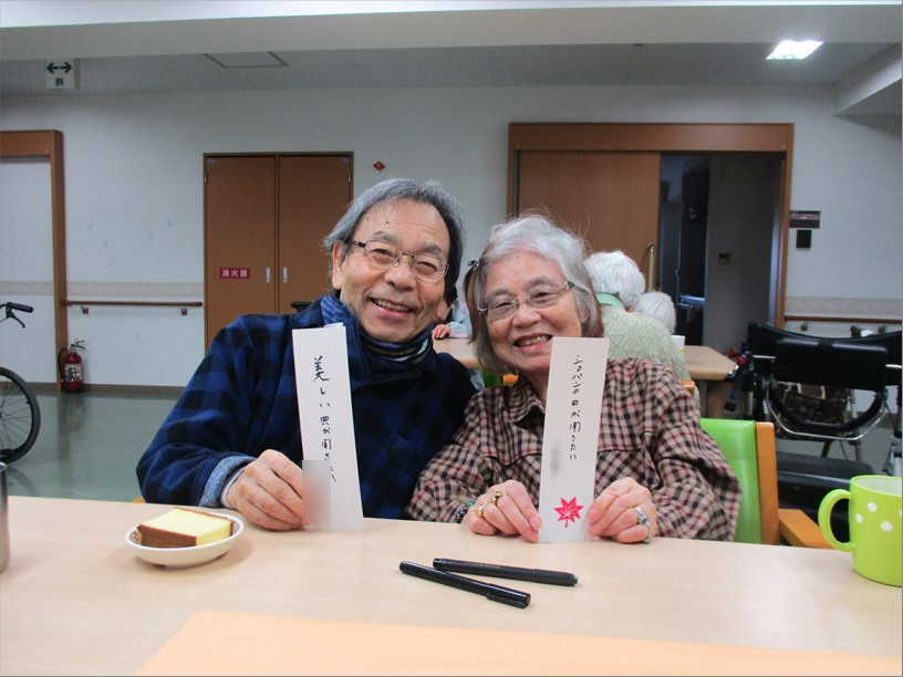 そこで『リーシェガーデン和光 特定施設』では『文化の日』に、ちなんで書道レクを行いました。