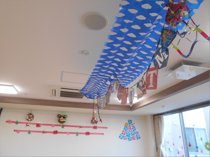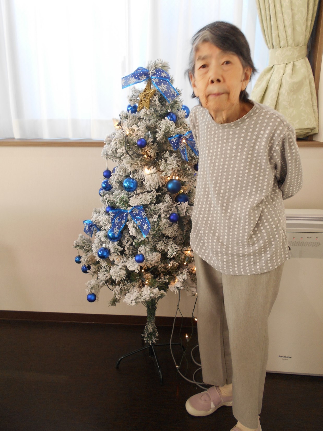 各フロアそれぞれ別の色のツリーを飾り、毎日光るツリーを見ながら、「もうすぐXmasだねー」、「もう年末になるなんて1年早いねーなどと、毎日楽しく会話をしています。