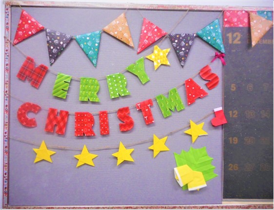 食堂の壁飾りにレクリエーションで折っていただいたお星さまやガーランドも使用させていただきました。