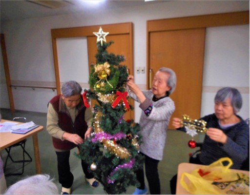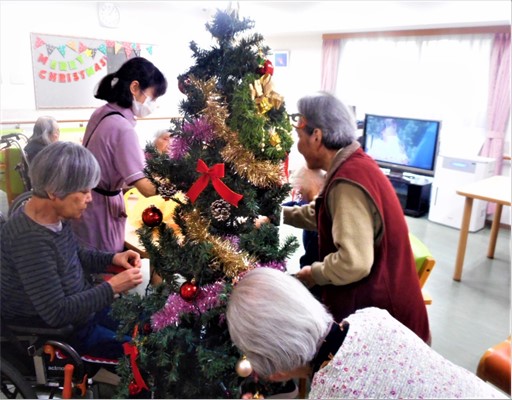 先日は、ご入居者様と一緒にクリスマスツリーの飾り付けをいたしました。