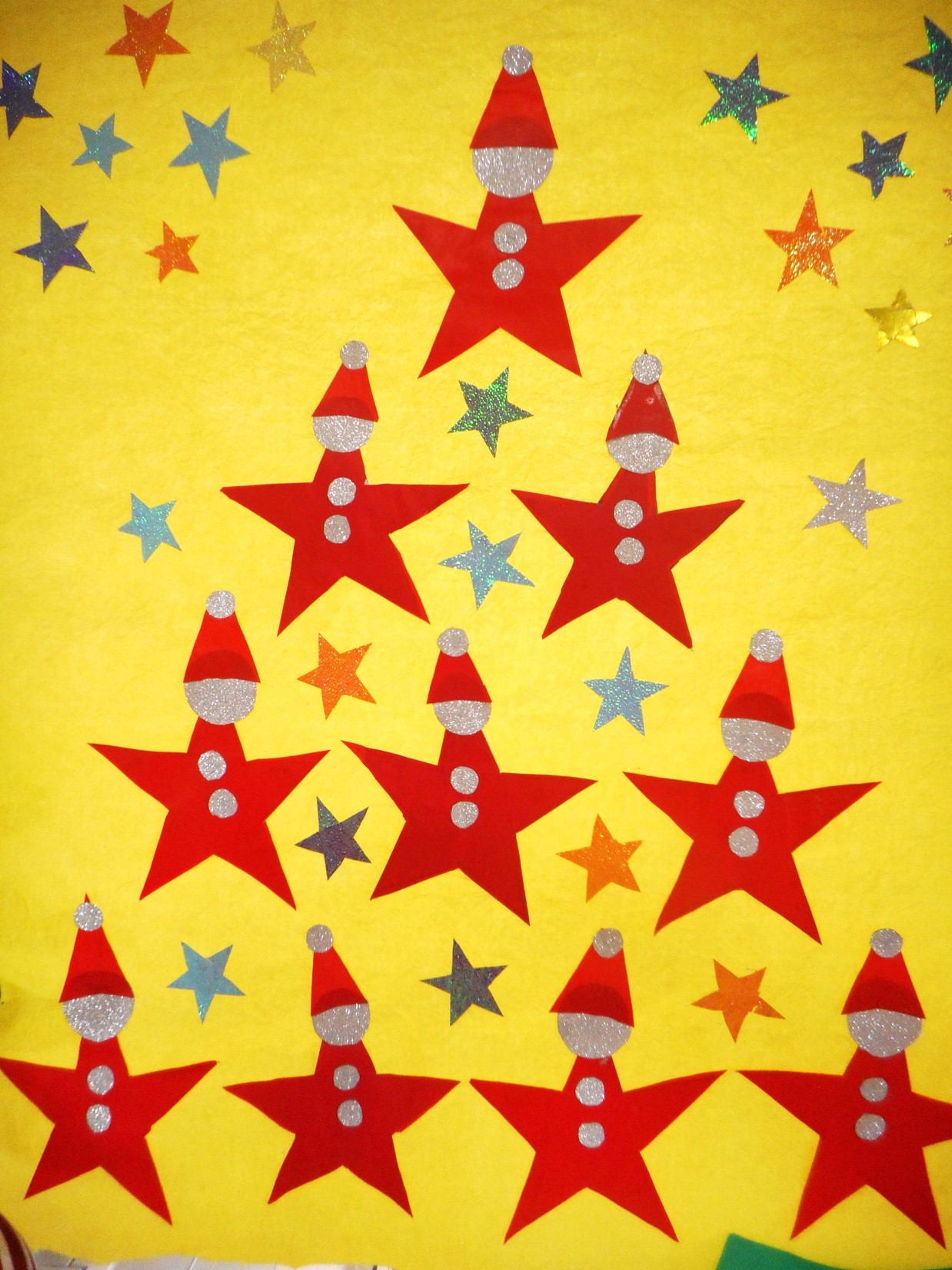 こちらは入居者様の作品。かわいらしい小人がたくさん!サンタのお手伝いに借りだされたのかな?♬