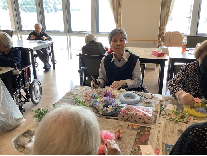 『ローベル上井草』のご入居者様はお花がお好きな方が多いので楽しそうに制作しておられました。