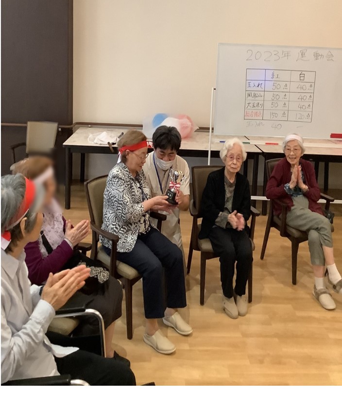 3つの競技の結果、今年は紅組が優勝しました!!優勝した紅組にはトロフィーが授与されました!
