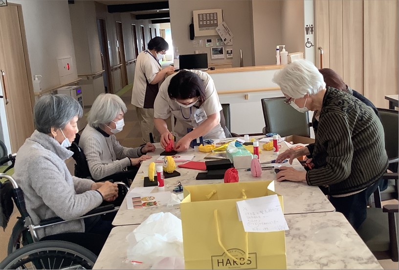先日、ご入居者と縁起物のだるまを作りました