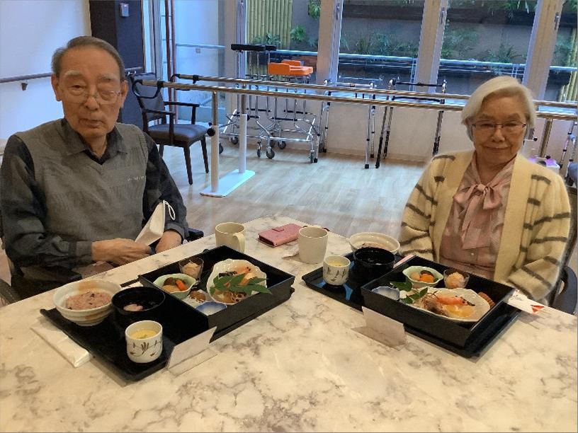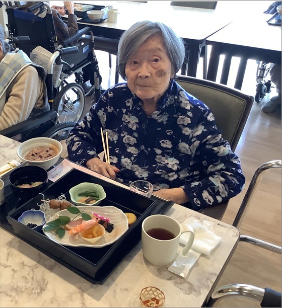 お昼ご飯はお重に入ったお節料理でした。「素敵な入れ物ね!」といつもと違う器にも喜ばれていました。