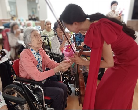 情熱的なピアソラの「リベルタンゴ」では身体でリズムを取りながら聴く入居者様も。