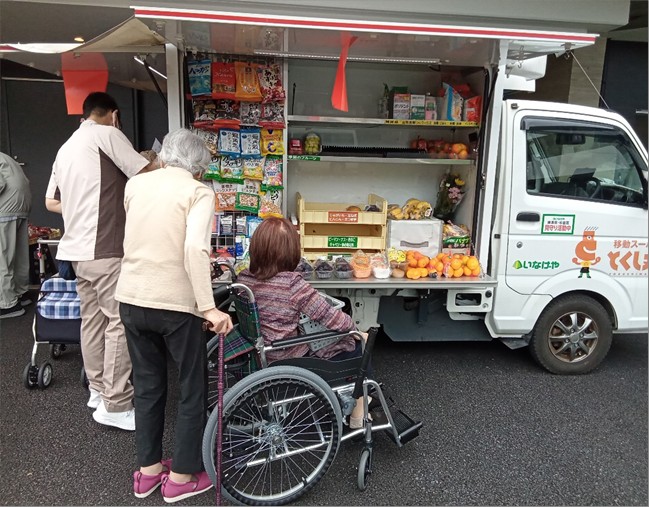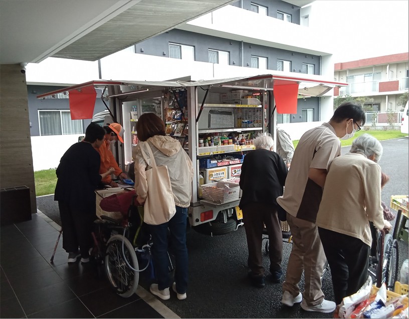 ご入居者様が楽しみにされている「とくし丸」様が今日も時間ピッタリに来てくれました!