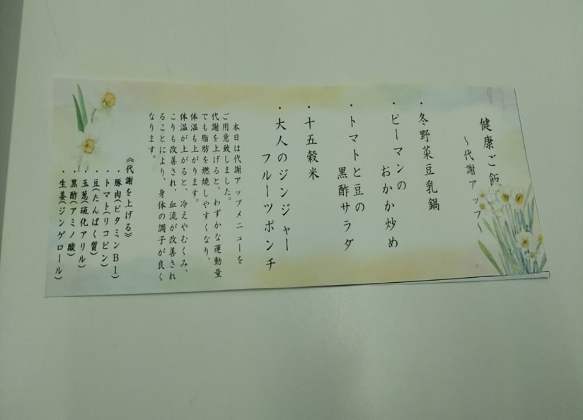 『代謝アップ』を期待できる食材をふんだんに使用したメニューとなっております。