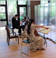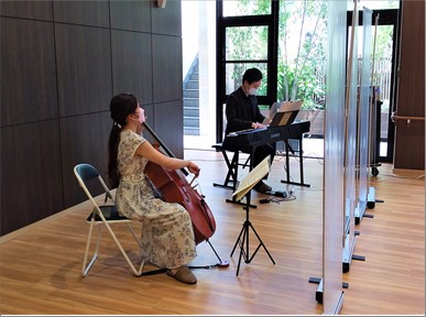 感染症対策を万全に対策したうえでの開催となります。演奏者とお客様の間には、飛沫防止パネルを置いていますがそれを感じさせない演奏でとても癒されます。