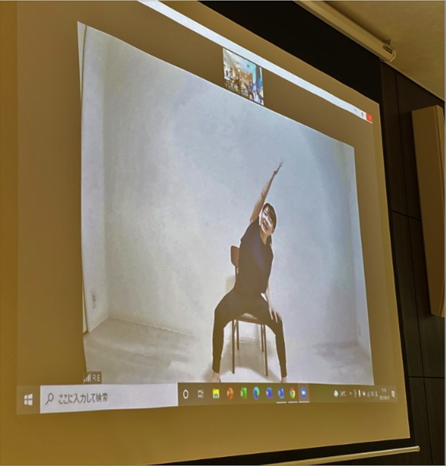 ヨガトレR指導者とリアルタイムにつながって行うオンラインレッスンで、画面越しにはなりますが実際にヨガの先生を前に体操を行いました。