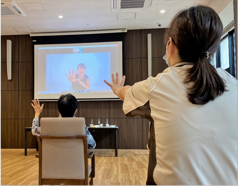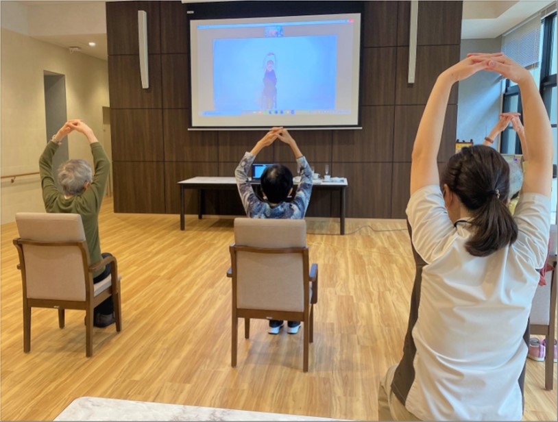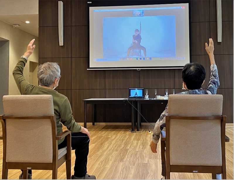 オンラインヨガ終了後、ご入居者様に感想をお聞きしたところ、「普段行う体操と違う雰囲気で楽しかったわ。」と話され、満足されていました。