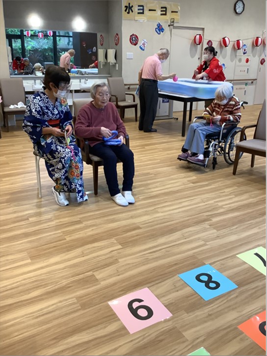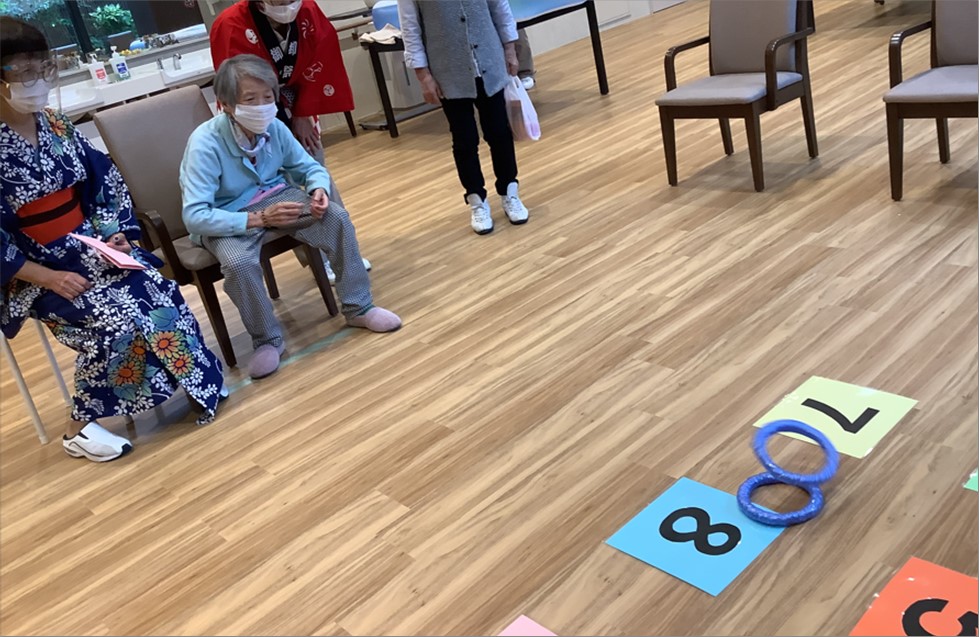 今年は去年に比べてご入居者様も増えてゲームのスペースも大きく取って楽しんでいただきました。