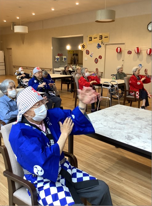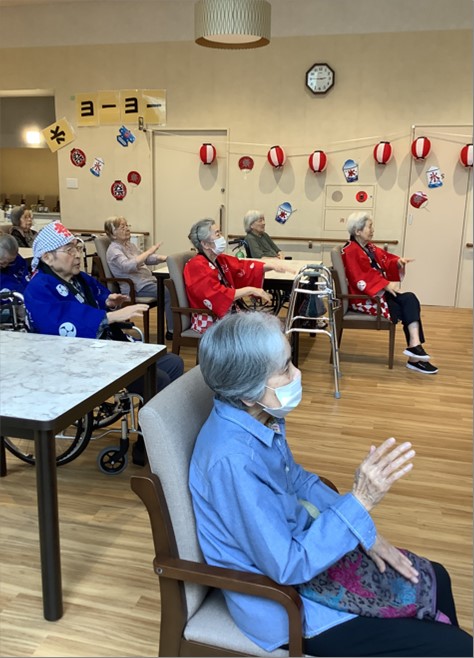 いつものアクティビティの時間は盆踊りを行い、夏の雰囲気を味わっていただきました。