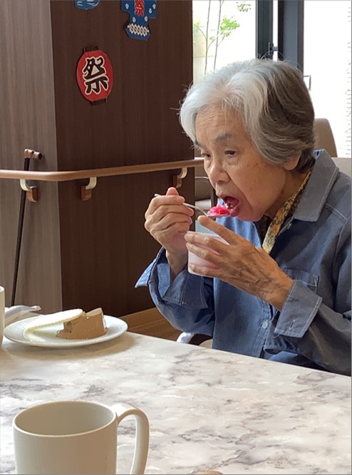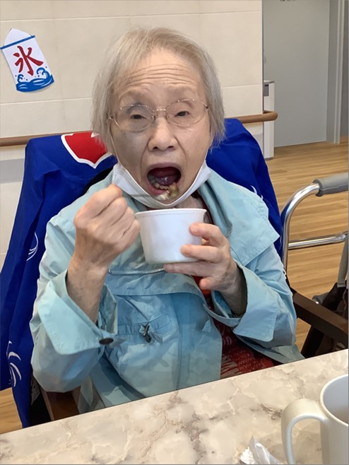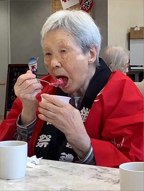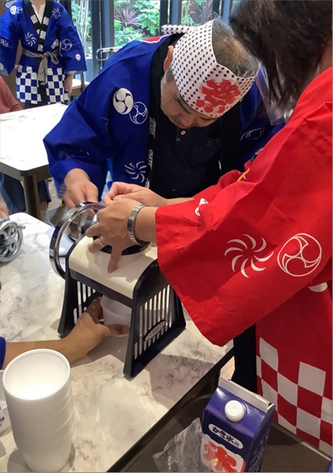 最後におやつの時間にカキ氷を味わっていただこうと思い、電動と手動のカキ氷器を準備して、手動を使用してご自身で作ったカキ氷を召し上がって楽しまれた方もいらっしゃいました。