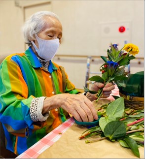 先日フラワーアレンジメントを行いました! 皆様、夢中になって花を生けられ、出来上がった作品にすごくいい笑顔をしてくれています。