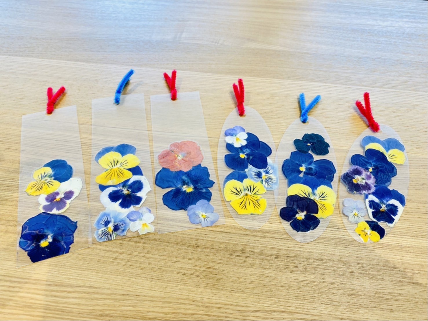 花壇のお花を少しばかり頂戴し、おし花のしおりを作りました。