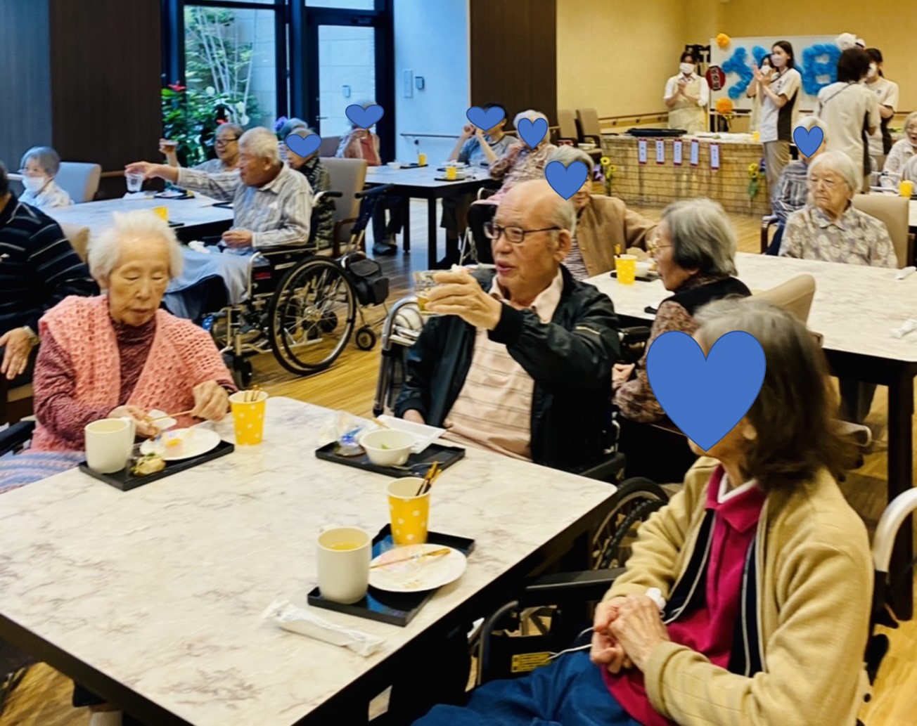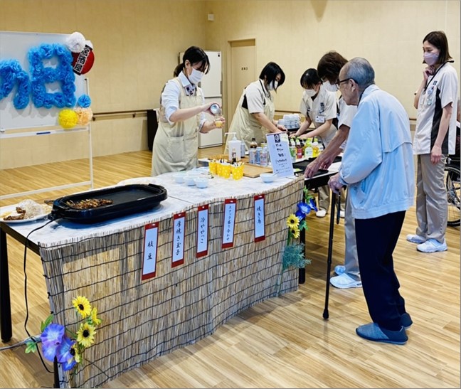 男性入居者様から『昔、行った立ち飲み屋を思い出した』女性入居者様からは『お祭りみたいで楽しい』と喜んで頂けたようで私たち職員も嬉しかったです。