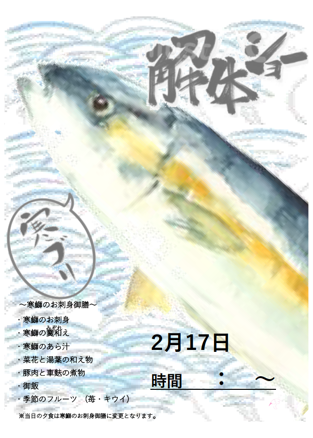 2/17(土) 寒鰤の解体ショー 14:30~
